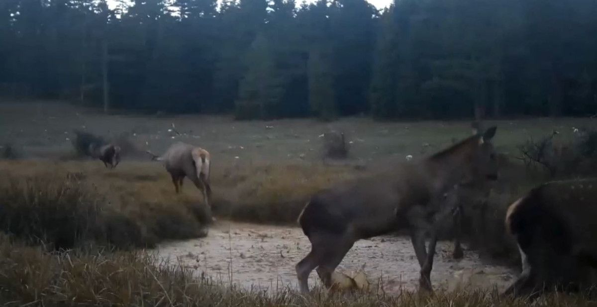 Fotokapanlara yansıyan görüntülerde, bir araya gelen çok sayıda kızıl geyiğin su birikintisi içinde ve çevresinde yaptığı hareketler, adeta dans ediyormuş izlenimi verdi. Geyiklerin suya yansıyan siluetleri görsel bir şölen oluşturdu.