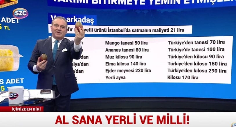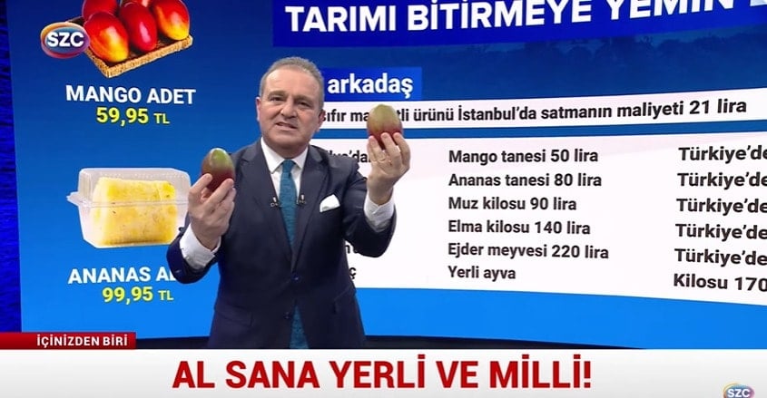 “- Değerli SÖZCÜ TV izleyicileri, Türkiye’de iktidar tarımı bitirmeye niyet etmiş gibi. Ananas Türkiye’de de ekilip biçiliyor ama ta uzaklarda Brezilya’dan da geliyor. O zaman soru şu, Brezilya’dan gelen ananas Türkiye’deki ananastan ucuz olabilir mi? Oluyor.